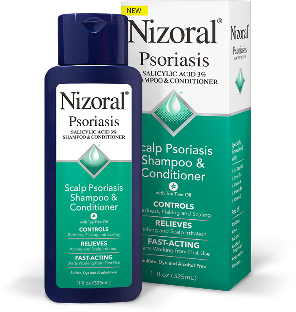 Nizoral Psoriasis Shampoo & Conditioner is a dual-action formula with Salicylic Acid 3% and Tea Tree Oil, designed to control flaking, redness, and scaling caused by scalp psoriasis, seborrheic dermatitis, and even severe dandruff. It starts working from the first use to relieve itching and discomfort.